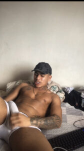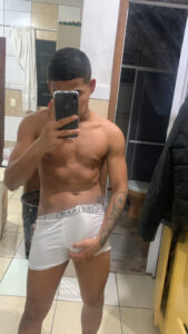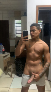 Garoto hetero dotado puto safado se exibindo em fotos e vídeo amador mostrando a mega rola grossa cabeçuda de pau duro e volume na cueca branca querendo comer cu de gay no sigilo
